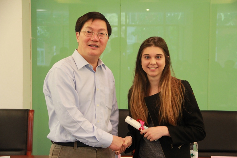 隨后,來自法國拉羅謝爾商學院的外國留學生艾利克斯(CASTEL ALEXANDRA)作為留學生代表發言,她表示,通過在校一年的學習與生活,他們加深了對中國語言與文化的了解,并感謝學校領導、老師及同學們的親切關懷和幫助,使他們在這里度過了一段非常難忘的留學生活。