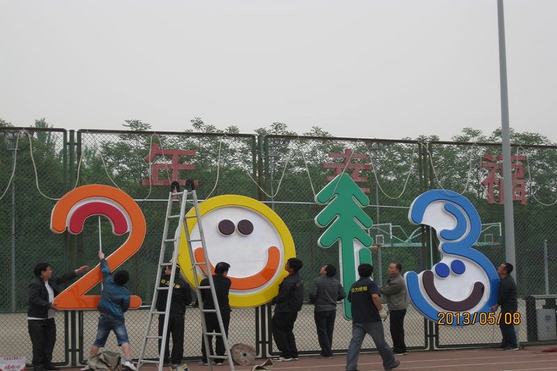 在運(yùn)動(dòng)會(huì)開(kāi)幕的前兩天,后勤管理處的同志們紛紛行動(dòng)起來(lái),全力做好運(yùn)動(dòng)會(huì)開(kāi)幕式的照明、會(huì)場(chǎng)布置、音響設(shè)備安裝、食堂菜品等各項(xiàng)準(zhǔn)備工作。后勤管理處處長(zhǎng)盧燦寬介紹,“為了保證操場(chǎng)觀禮臺(tái)的亮度,5月8日一大早,天空中飄著小雨,動(dòng)力維修科的電工師傅們趕赴良鄉(xiāng),支援良鄉(xiāng)操場(chǎng)的大型吊燈安裝工作。此次燈具安裝任務(wù)十分艱巨,安裝人員需要乘坐長(zhǎng)臂吊車,在棚頂處安裝射燈,作業(yè)面小,且?guī)в幸欢ǖ奈kU(xiǎn)性。這項(xiàng)工作要求安裝人員既要有過(guò)硬的技術(shù),又要有膽大心細(xì)的勇氣。” 當(dāng)我們?cè)诹寥绨讜兊倪\(yùn)動(dòng)場(chǎng)上觀看精彩的開(kāi)幕式表演時(shí),我們不曾看到的是,后勤管理處同志們安裝、拆卸各種設(shè)備時(shí)流下的汗水。