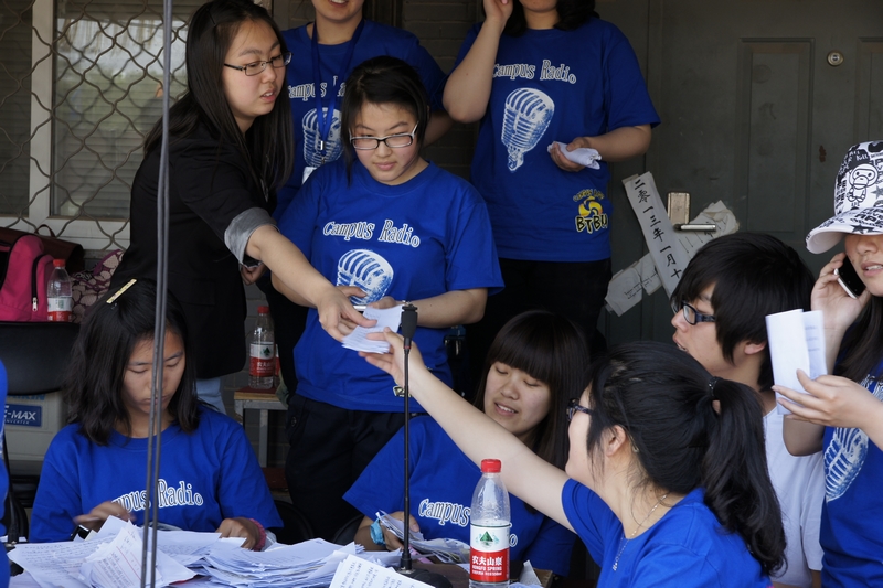 廣播臺(tái)的同學(xué)們說(shuō):“念運(yùn)動(dòng)會(huì)的稿件是最需要激情的,喊了一天嗓子都喊啞了。但是沒(méi)有身處其中的人永遠(yuǎn)不會(huì)明白,當(dāng)你聽(tīng)到自己的聲音在操場(chǎng)上回響時(shí),那是怎樣一種感受。能夠傳遞工商聲音,也是我們的幸福。”