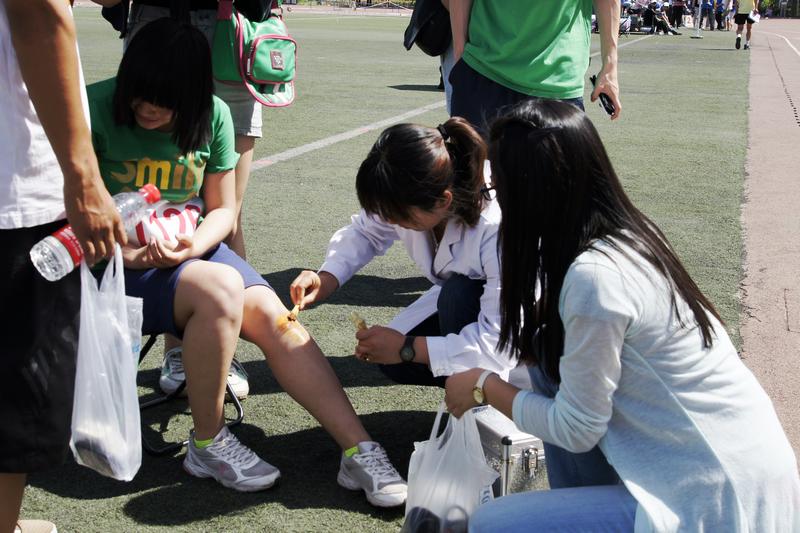 為保證同學(xué)們的比賽中的健康,校醫(yī)院在賽前多次完善預(yù)案,專門安排醫(yī)生赴比賽現(xiàn)場(chǎng)做保障工作。兩天的運(yùn)動(dòng)會(huì)中,醫(yī)生們多次、及時(shí)處理了同學(xué)們遇到的損傷,向同學(xué)們宣傳了科學(xué)運(yùn)動(dòng)的理念。校醫(yī)院院長(zhǎng)楊曉明說(shuō):“通過(guò)今年的運(yùn)動(dòng)會(huì)保障工作,我們發(fā)現(xiàn)同學(xué)們不太科學(xué)的運(yùn)動(dòng)方式造成的損傷較多,比如中長(zhǎng)跑運(yùn)動(dòng)員賽前準(zhǔn)備活動(dòng)不足造成肌肉拉傷等情況。還有部分同學(xué)因體質(zhì)較弱,出現(xiàn)暈倒等情況。針對(duì)這些情況,今后,校醫(yī)院將加強(qiáng)科學(xué)運(yùn)動(dòng)知識(shí)的宣傳,讓師生安全運(yùn)動(dòng),增強(qiáng)體魄。”