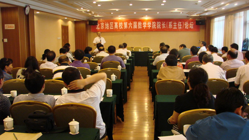 5月25-26日,第六屆北京地區高校數學學院院長(系主任)論壇成功舉行。該論壇由北京數學會、北京工商大學理學院共同舉辦。來自北京大學、清華大學、北京師范大學等教育部高校和市屬市管高校的60多位院長、系主任出席了本次論壇。論壇由北京數學會秘書長、北京大學數學學院馮榮全教授主持,北京數學會理事長、北京大學數學學院柳彬教授作總結講話。我校理學院院長曹顯兵教授應邀作了主題報告。