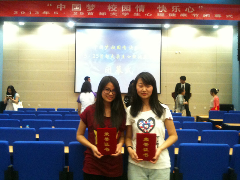 本次心理健康節(jié)活動得到了我校各學(xué)院學(xué)生的熱烈響應(yīng)和積極參與。全校共有70多個班級,累計2000余名學(xué)生參與了多項健康節(jié)活動。上報的參賽項目不僅數(shù)量眾多,而且有較高的質(zhì)量,取得了多項獎勵。在心理健康知識競賽中,我校獲得A區(qū)二等獎;藝傳學(xué)院張晶晶等同學(xué)的微電影《Better Me》獲得北京市二等獎;在主題班會活動評選中,法學(xué)院法學(xué)122班榮獲北京市二等獎,藝傳學(xué)院廣設(shè)122班榮獲三等獎。