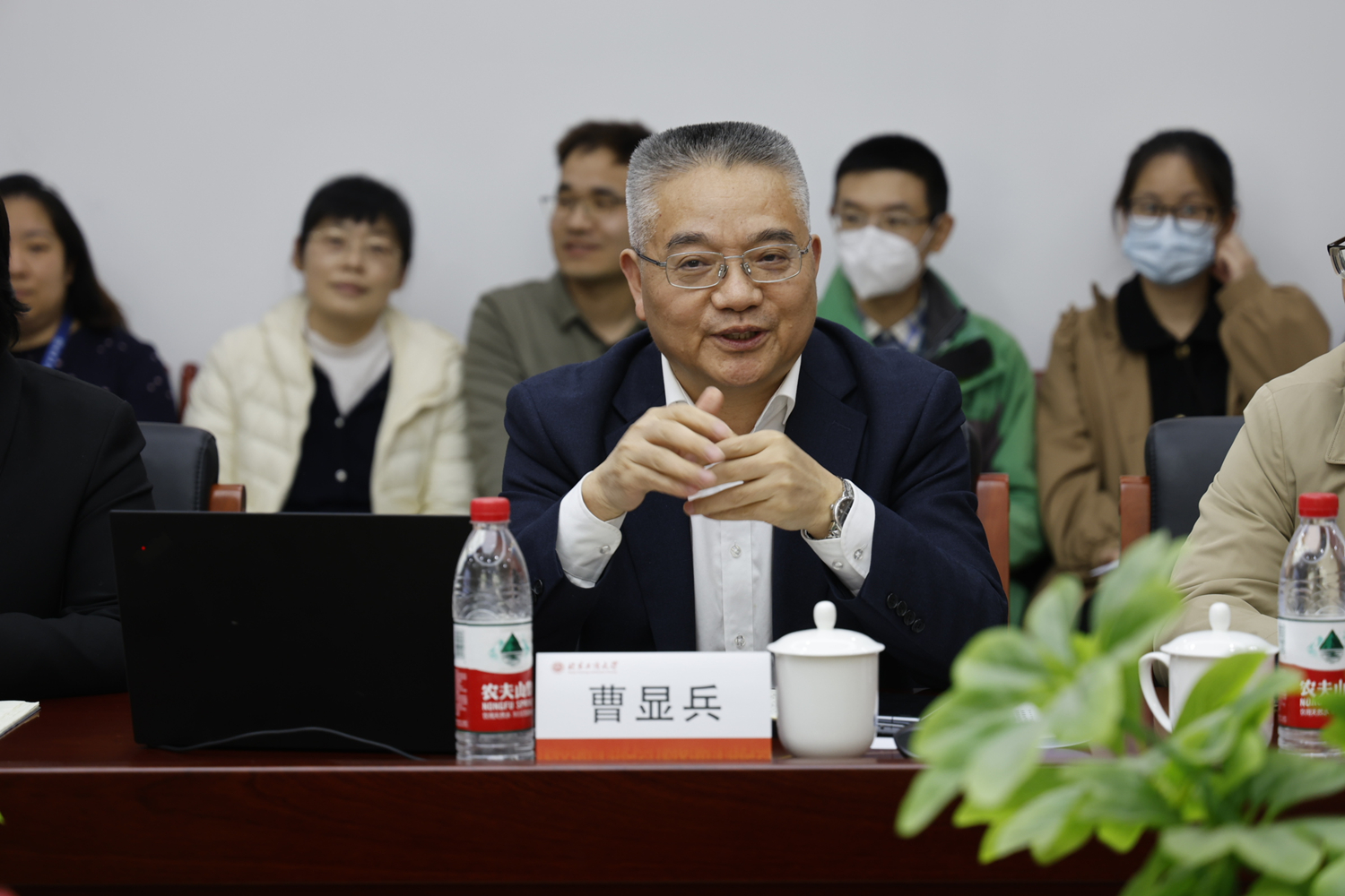 曹顯兵以《清底數 聚共識 謀發展》為題,緊扣學校“雙一流”和高水平研究型大學的建設目標,聚焦學校發展重點任務,匯報了數學與統計學院的基本情況、未來規劃與思路舉措。他用數據說話,從教師結構、學科門類、人才隊伍、教育教學、科研成果等方面介紹了學院的基本情況。描繪了未來規劃,加強有組織的科研團隊建設、強化學科建設的龍頭作用,全面提升教學水平和人才培養質量。介紹了學院下一步發展思路,以強化政治統領,強化頂層設計,強化主體意識“三個強化”全面加強黨的建設,以高層次人才引進和青年教師骨干培育“兩個抓手”推進高水平人才引育,以開放格局持續深化中外合作辦學特色,完善學院獎懲機制激發教師干事創業積極性。數據科學系主任岳美玲、應用數學系主任王麗娜、應用統計系主任謝峰、經濟統計系主任趙江、教授代表耿直、陳星玎、涂建華、王學麗從科研團隊建設、青年教師培養、人才培養、國際交流、學科交叉融合等方面進行了交流探討。