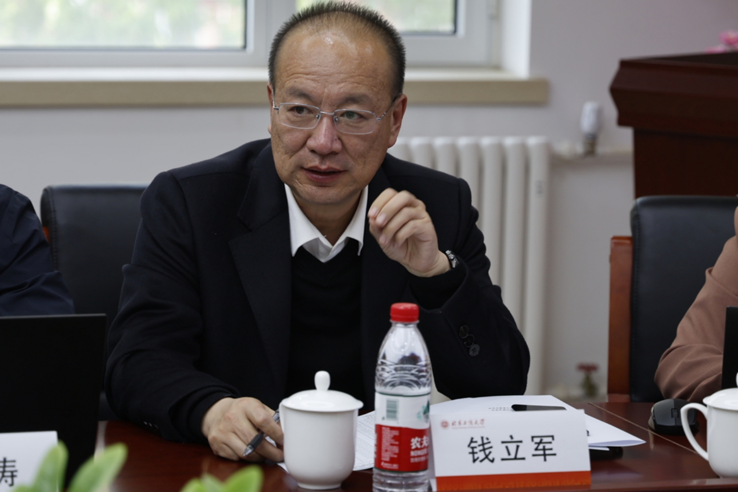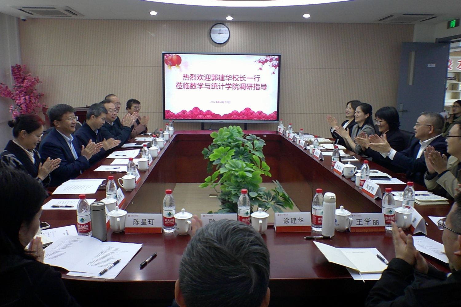 4月10日下午,學校黨委副書記、校長郭建華,黨委常委、副校長毛新述帶隊到數學與統計學院調研指導,就學院事業發展、學科建設、科學研究等方面與學院班子成員、教師代表座談交流。學校黨政辦公室主任王曉華、發展規劃處處長吉濤、科學研究院自然科學處處長錢立軍、黨政辦公室副主任張揚、研究生院副院長張倩、數學與統計學院全體班子成員、系主任及教授代表參加調研座談會。會議由學院黨委書記周艷杰主持。