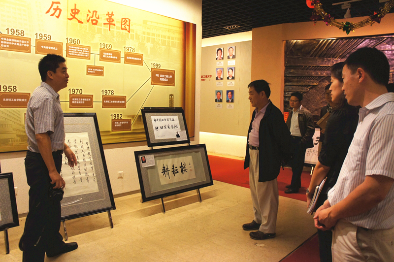 會后大家在校史館參觀了主題為“翰墨凝情溢愛工商”—— 2013春季北京工商大學檔案館館藏書畫精品展。本次展覽展出了黨和國家領導人郭沫若、田紀云、李嵐清、陳至立,書畫大師趙樸初、啟功、歐陽中石、胡絜青、米南陽、李鐸,校友孫正、朱康等為學校的題詞、贈畫,這些作品不僅展示了作者的功力、學識、修養、氣質,同時凝聚著對學校的關愛和深情。各部門檔案員表示,觀看這些伴隨著學校63年發展足跡的翰墨精品,使大家欣賞這些有著博大精深文化內涵和巨大文化魅力的藝術作品同時,更加能感受到學校的薪火傳承與文化積淀,感受到學校63年辛勤耕耘桃李芬芳滿天下的激情與豪邁。