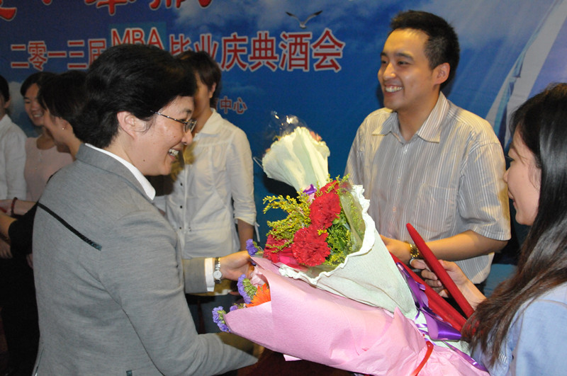 在慶典活動上,畢業生向母校贈送了紀念品,學院也向畢業生回贈了紀念品。校領導孫堯東、謝志華、張耘為2013屆MBA、MPACC優秀畢業論文獲獎者頒發了證書和獎品。
