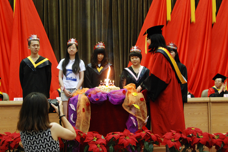 在這個特殊的日子里,學院還為五名在這一星期內過生日的同學共同舉辦了一場盛大的“生日宴會”。當緩緩推出燃著蠟燭的生日蛋糕時,在場的所有人唱起了《生日快樂》歌,老師們親手戴上的生日帽以及現場滿滿的祝福讓這五位同學熱淚盈眶。