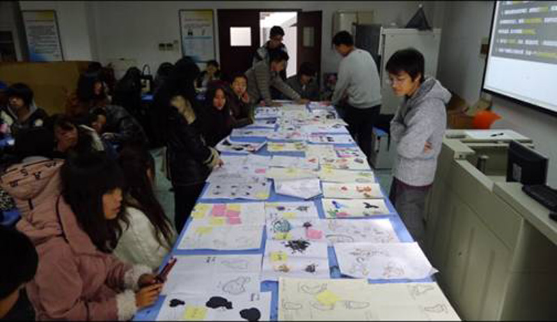 在此次的教學(xué)改革中,產(chǎn)品設(shè)計專業(yè)的一大特點就是采取了豐富多彩的課堂延續(xù)教學(xué),包括一對一輔導(dǎo);討論講評;外出調(diào)研;參觀博物館、展覽館;課程展覽的設(shè)計與布展;專題講座;線上輔導(dǎo)……專業(yè)教師根據(jù)本課程的特色、學(xué)生的具體需求進行有針對性的課外輔導(dǎo)形式,并通過課外輔導(dǎo)完善課堂教學(xué)。在課外輔導(dǎo)中,設(shè)計概念交流、設(shè)計匯報、教師點評、學(xué)生互評、設(shè)計實踐與指導(dǎo)等多個環(huán)節(jié)貫穿整個課程的始終。在延續(xù)教學(xué)環(huán)節(jié),教師和學(xué)生都擺脫了傳統(tǒng)課堂教學(xué)“你教我學(xué)”的一對多形態(tài),自由組合、多方提問、自行解決問題……極大地發(fā)揮了學(xué)生學(xué)習(xí)的積極性和主動性,教師能夠針對學(xué)生的個性特點進行有針對性地設(shè)計指導(dǎo),進一步激發(fā)其創(chuàng)造性。此外,學(xué)術(shù)講座也為課程教學(xué)帶來了新鮮活力。產(chǎn)品設(shè)計專業(yè)特聘請美國阿拉斯加大學(xué)王雪明教授、北京市政府特聘外籍專家德籍孫大力教授等舉辦學(xué)術(shù)講座,師生反響熱烈。