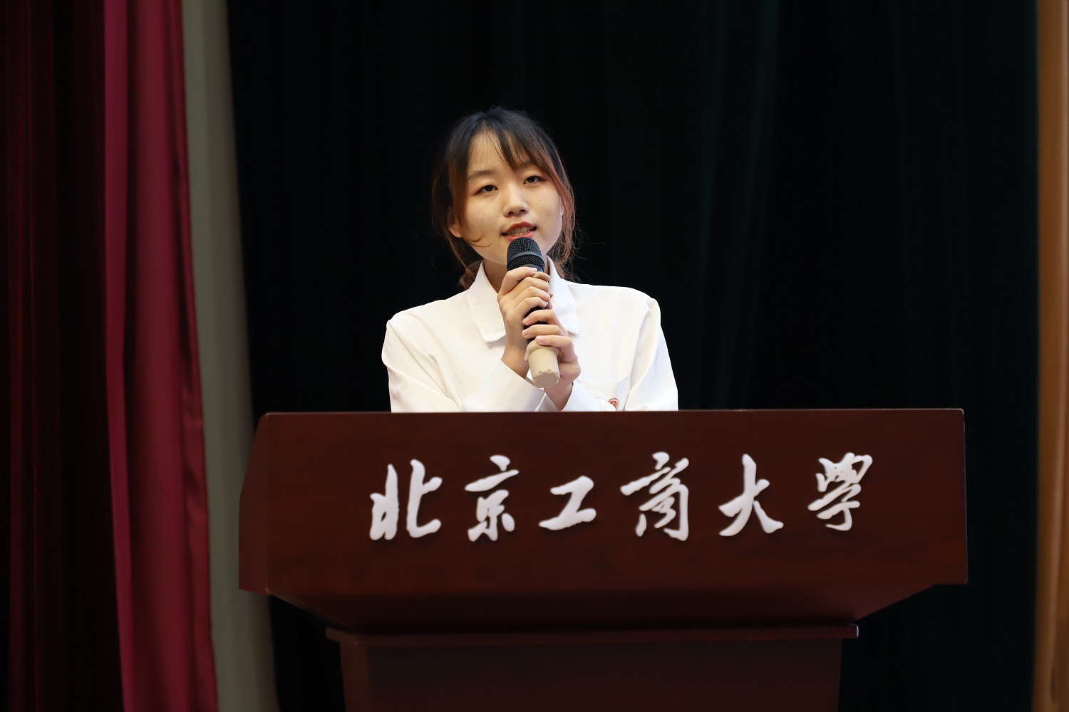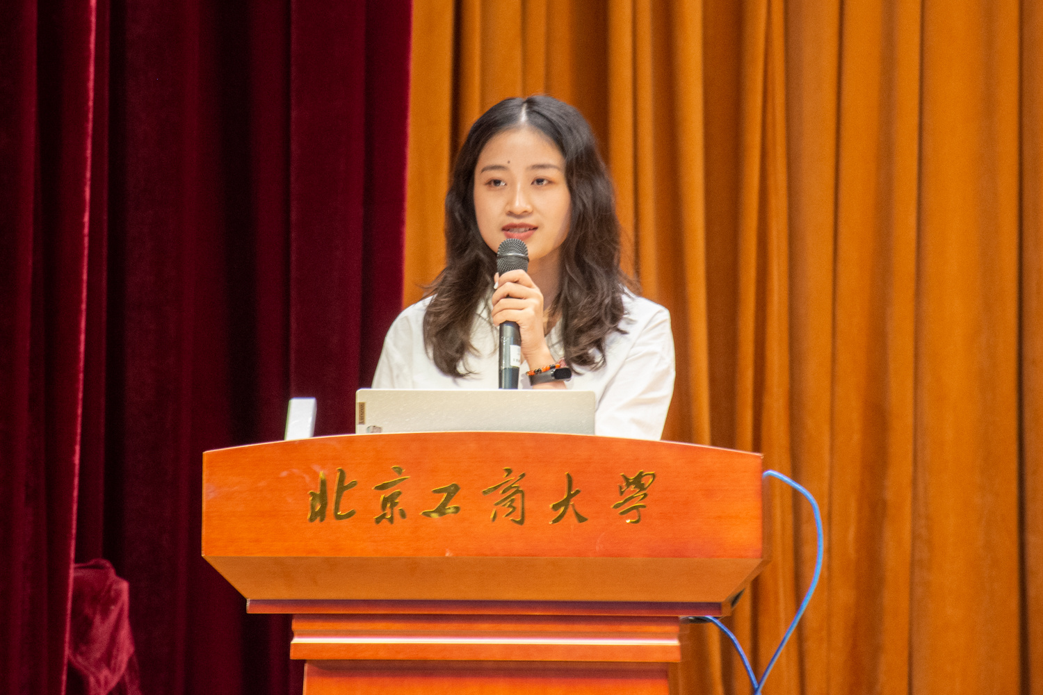 “北工商是與共和國一起成長起來的”。在校史宣講中,宣講團(tuán)成員從北工商的歷史沿革圖切入,將學(xué)校建校71年以來“立學(xué)為民”、“學(xué)而為國”的發(fā)展歷程完整呈現(xiàn),生動展示了北工商紅色基因的一脈傳承。又通過對校徽、校訓(xùn)、校歌的解讀,以及對學(xué)校環(huán)境設(shè)施的介紹,讓2021級新生對母校有了更為直觀而系統(tǒng)的了解。