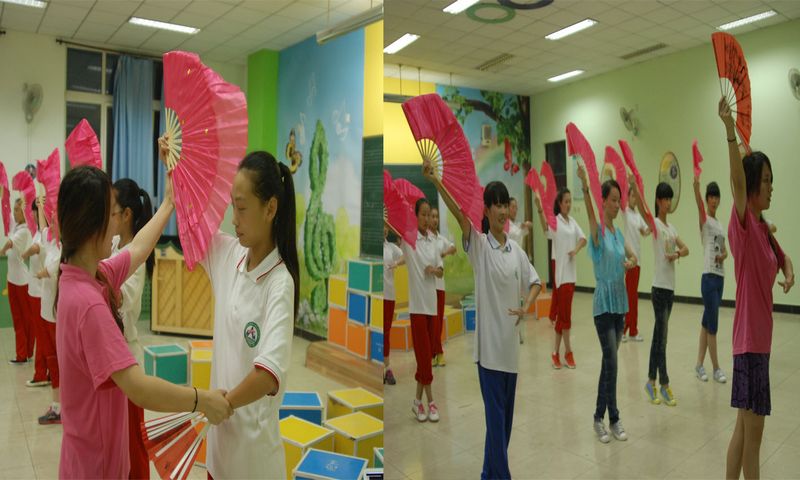 傍晚,孩子們依舊保持著極高的熱情與活力參與到藝術類課程的培訓中。藝術類課程引起了孩子們極大的興趣。他們紛紛投入到訓練中,一部分表現突出的孩子也光榮地加入到支教匯演節目的編排中。排練雖然辛苦,他們卻樂在其中,并且加倍珍惜這難得的機會,認真學習每一個動作,每一段朗誦,每一句樂章。
