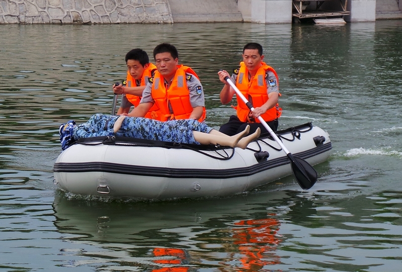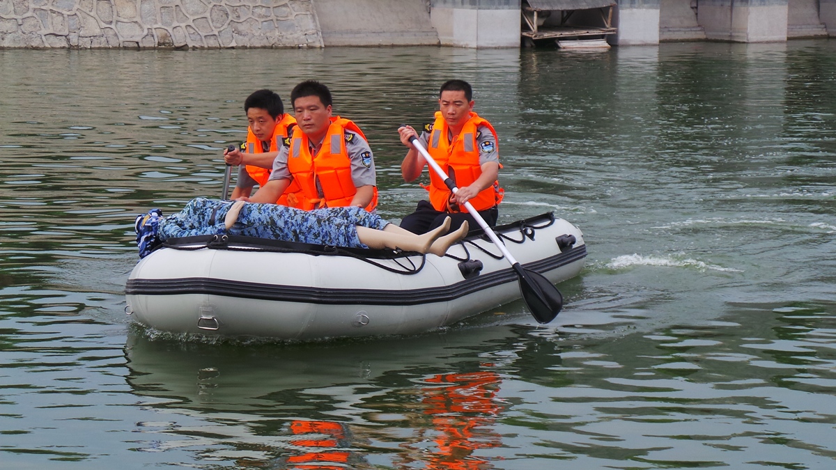 在求知廣場譚校長還觀看了保衛處組織的防汛救助演練。