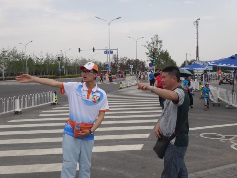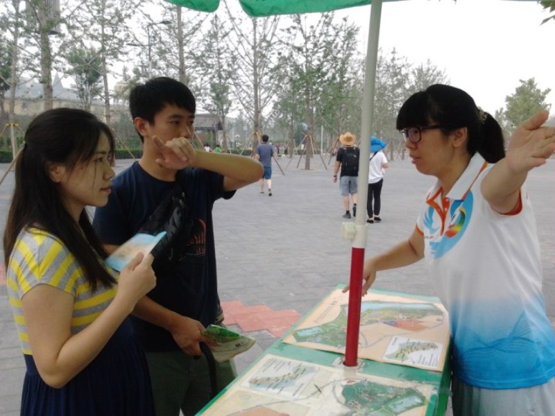 志愿者為游客指引路線 志愿者為游客介紹景點(diǎn)