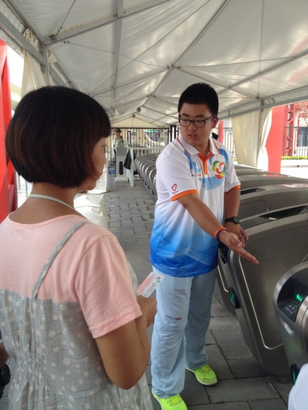 志愿者為游客提供貼心的服務(wù) 志愿者以飽滿的熱情面對(duì)每一天