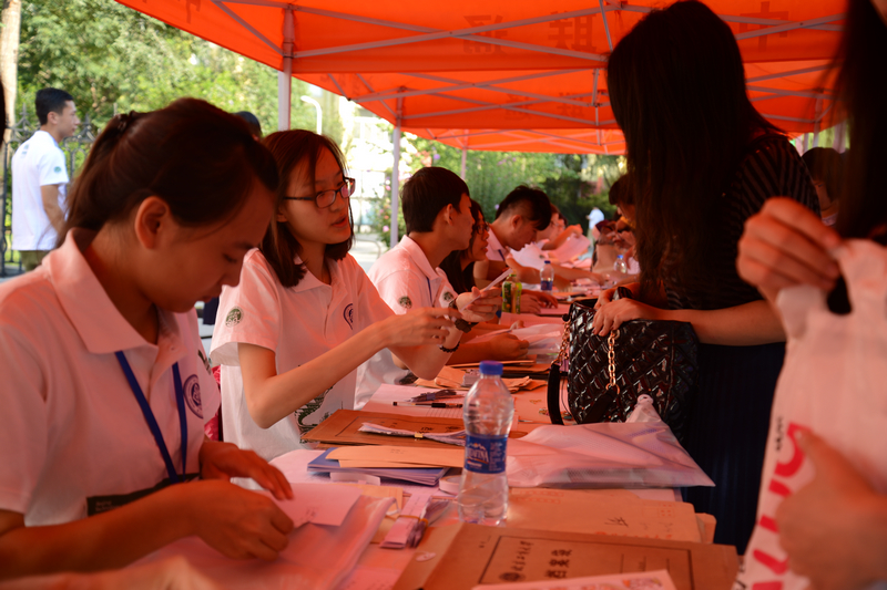 今天,北工商張開雙臂,與來自五湖四海的學(xué)子熱情相擁。在地鐵良鄉(xiāng)大學(xué)城站,志愿者們熱情細(xì)心地服務(wù),一輛輛“迎新專車”成了新生對(duì)北工商的第一印象。天橋上、道路兩旁所精心布置的條幅、展板、導(dǎo)航圖等讓新生及家長進(jìn)一步認(rèn)識(shí)學(xué)校。“最美中國,美麗校園”優(yōu)秀攝影展等展覽前也吸引了不少新生及家長前來觀看。校園廣播中播放著學(xué)校介紹,幫助新生盡快熟悉學(xué)校情況,融入校園生活。志愿者服務(wù)站還為新生及家長準(zhǔn)備了充足的飲用水和座椅,滿頭大汗的學(xué)生志愿者們耐心解答、服務(wù)。
