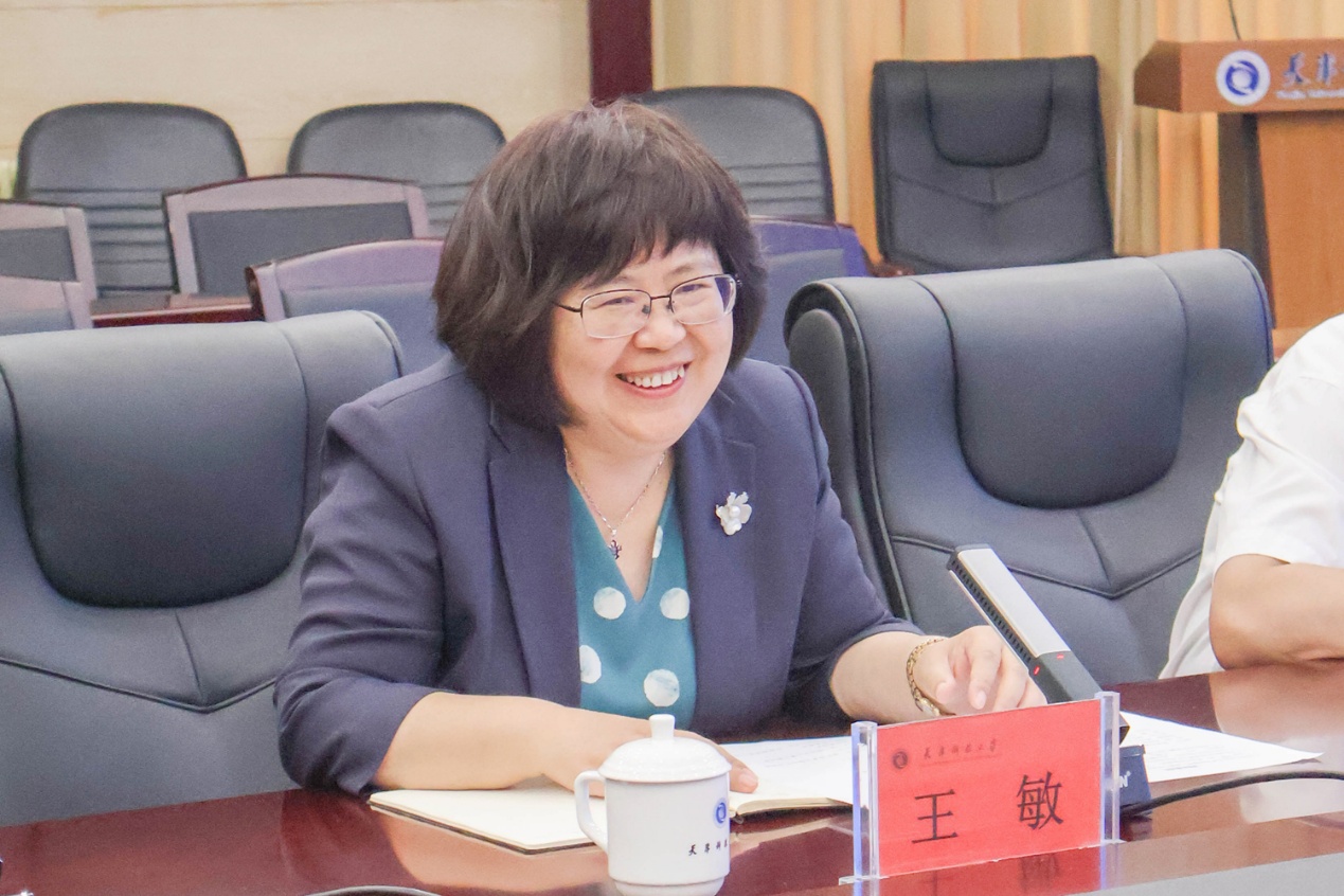 王敏代表天津科技大學對調研組一行的到訪表示歡迎,對我校長期以來對該校的支持表示感謝。她表示,作為中央和地方共建、天津市重點建設高校,天津科技大學從輕工業立業,逐步發展成為工、理、文、農、醫、經、管、法、藝、教育等學科協調發展的多科性大學。近年來,學校秉持“以貢獻體現價值、以服務實現發展”的理念,大力推進“先鋒計劃”,立足食品、材料、化工、機械、生物醫藥、海洋等學科優勢,主動服務和融入國家和區域高質量發展,努力為教育強國、教育強市貢獻力量。她指出,希望以此次調研交流為新起點,進一步深化兩校務實合作,促進互學互鑒,實現攜手并進。