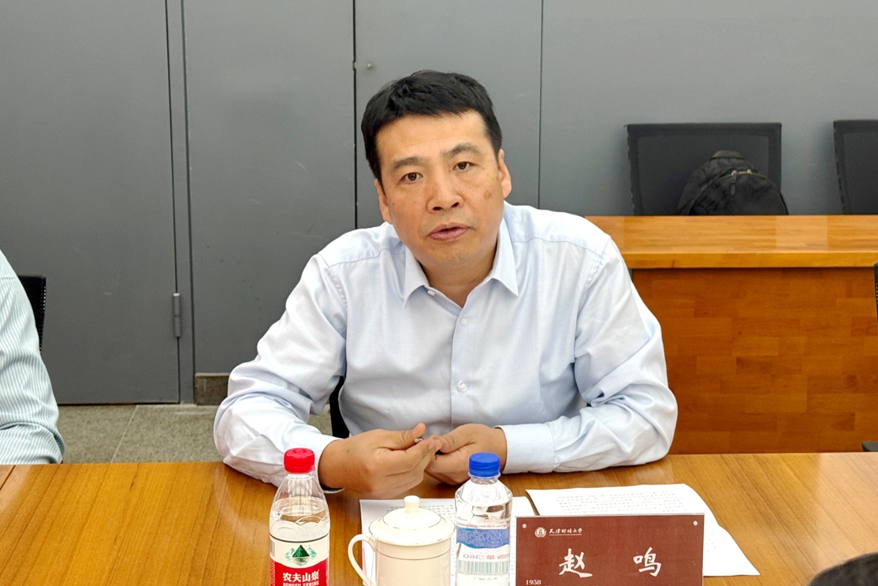 趙鳴代表天津財經大學對我校一行的來訪調研表示熱烈歡迎,并介紹了該校的歷史沿革和發展現狀。他表示,作為新中國最早建立的財經類高校之一,天津財經大學始終秉承“不息為體、尚勤致精、日新為道、經世濟民”的精神,為國家和天津經濟社會發展培養了一大批財經類優秀高等人才。近年來,學校堅持“四個面向”,緊密對接國家戰略需求和區域發展需要,充分發揮應用經濟學和工商管理等學科優勢,全面推進“新財經”建設,著力建設特色鮮明的高水平財經大學。他指出,兩校有著深厚的歷史淵源和緊密的聯系,希望以此次調研座談為契機,在學科共建、智庫協作等方面深化合作,共促發展。