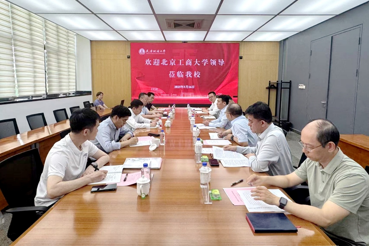 寇紅江代表學校對天津財經大學的熱情接待表示感謝,并聚焦“工商一體化”戰略布局與爭創“雙一流”奮斗目標,介紹了學校的發展藍圖。他指出,北京工商大學和天津財經大學同屬教育部劃定的財經類高校序列,同為京津冀蒙高校聯盟商科分聯盟的成員單位,共同肩負著服務國家和區域經濟社會發展的使命。近年來,天津財經大學在人才培養、學科建設、智庫建設等方面開展了一系列創新實踐,取得了顯著成效,積累了寶貴經驗,希望通過此次學習調研,進一步深化兩校間的交流與合作,不斷推動兩校事業高質量發展,攜手打造京津冀高等教育協同發展的典范。