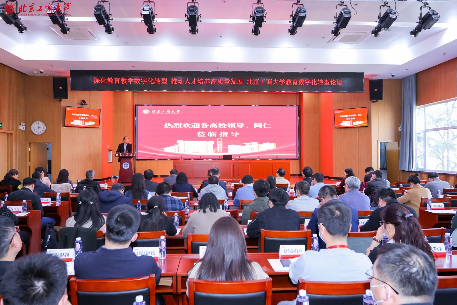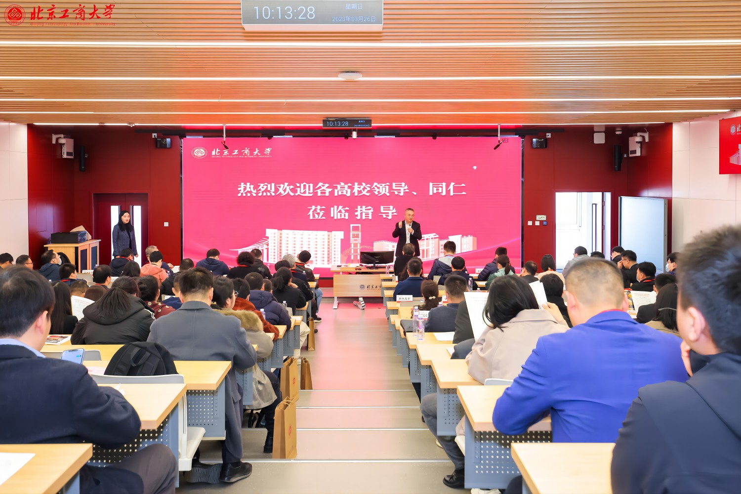 黨委書記黃先開致歡迎辭。黃先開提出,數(shù)字化轉型是北京工商大學未來發(fā)展的重要舉措,立足數(shù)字經(jīng)濟時代需求,傳承原有學科優(yōu)勢,構建了“一個聚焦、兩項支撐、三大提升、四個重塑”的教育數(shù)字化轉型新體系。樹立“以生為本、自定節(jié)奏、學習驅動”的人才培養(yǎng)新理念;構建“個性需求、能力導向、數(shù)字賦能”的人才培養(yǎng)新模式;打造“立足課程、服務師生、提升品質”的商科課程管理新機制,依托數(shù)字技術建立課程中心和學分銀行,從以專業(yè)管理為主導,轉變?yōu)橐哉n程管理為中心。這一轉型不僅需要思想觀念的變革,還需要整體提升廣大師生數(shù)字化思維和信息化素養(yǎng)。黃先開表示,學校堅持問題導向,迎難而上,準確識變、科學應變、主動求變,成立數(shù)字未來中心,開展了數(shù)字化轉型的多方位探索和多角度實踐,取得了一定成效。希望今后在北京市和各兄弟高校領導、同仁的大力支持下,在數(shù)字化轉型的道路上越走越遠,越做越好。