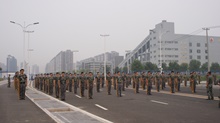 持續(xù)的高溫悶熱中,新一天的訓(xùn)練又拉開了帷幕。雖然已經(jīng)劃分了方陣,但是還需培養(yǎng)出默契。剛開始時(shí),同學(xué)們的正步行進(jìn),怎么也不能走成一條直線。教官們耐心地一遍又一遍地指導(dǎo),額頭上的汗水比同學(xué)們流得還多。功夫不負(fù)有心人,近三個(gè)小時(shí)的訓(xùn)練讓同學(xué)們終于也能走得有模有樣了。
