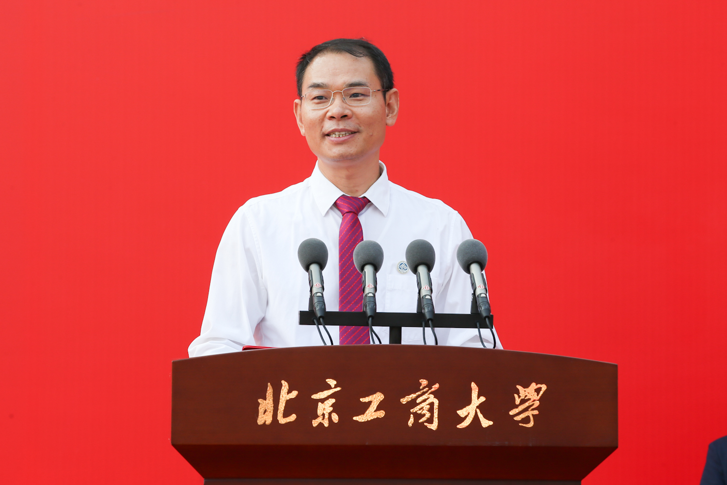 黨委副書記、校長郭建華發表題為《行遠自邇,篤行不怠》的講話。他表示,北京工商大學具有73年的光榮辦學歷程和深厚紅色基因,是國務院批準的全國首批碩士學位授予單位,是北京市重點建設的6所高水平研究型大學之一。近年來,學校錨定特色鮮明的高水平研究型大學辦學定位,聚焦國家和首都經濟社會發展急需、聚焦優勢學科專業,走上了“商科做強、工科做精、工商融合、雙輪驅動”的內涵式發展道路,開啟了深入推進“理工+經管”的工商發展新模式,為同學們成長發展創造了更好的條件、提供了更多的機遇。。期待同學們在接下來的3年甚至更久的時間里,勇立潮頭、勇攀高峰,秉承北工商人“求真、立德、勤奮、創新”的校訓精神,努力成為可堪大用、能擔重任的棟梁之才。