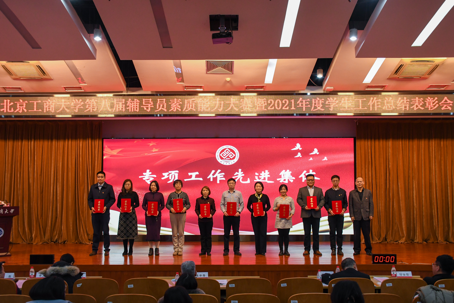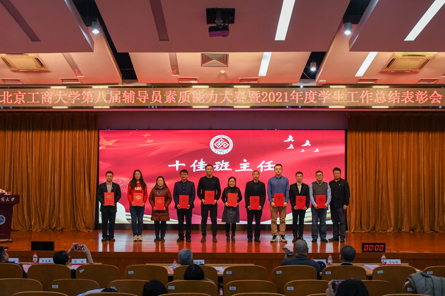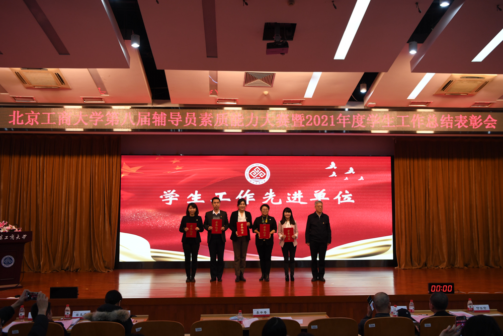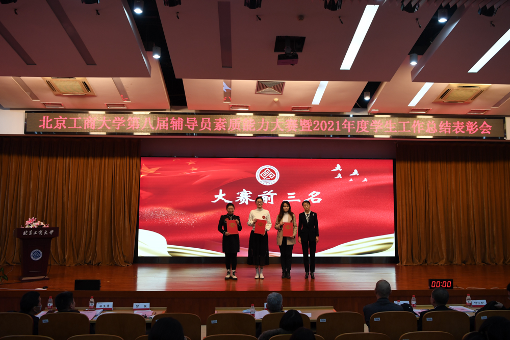 表彰大會(huì)環(huán)節(jié),與會(huì)人員集中觀看2021年學(xué)生工作總結(jié)視頻。學(xué)生處處長(zhǎng)呂良宣讀《關(guān)于表彰北京工商大學(xué)2021年度學(xué)生工作先進(jìn)集體與先進(jìn)個(gè)人的決定》,李中奇副書(shū)記、職能部門(mén)負(fù)責(zé)人現(xiàn)場(chǎng)為優(yōu)秀輔導(dǎo)員、十佳輔導(dǎo)員、十佳班主任、第八屆素質(zhì)能力大賽前三名及專項(xiàng)工作先進(jìn)集體、學(xué)生工作先進(jìn)單位頒發(fā)了獎(jiǎng)項(xiàng)。