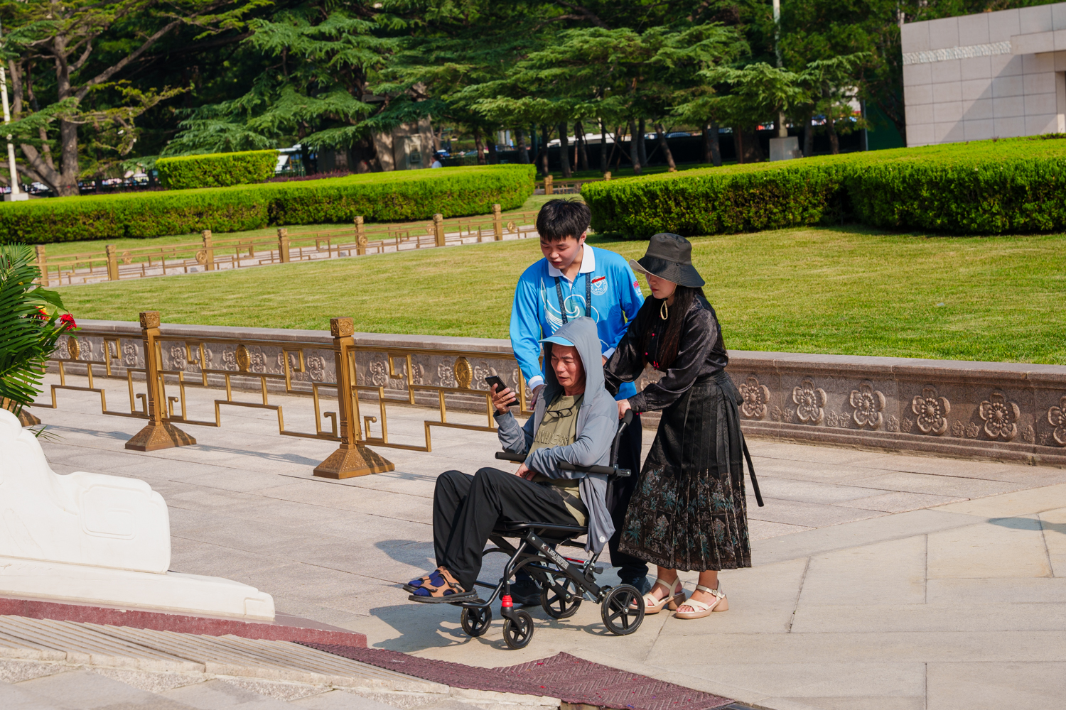 每日凌晨5點,志愿者們迎著旭日整裝集結,7點前準時奔赴扶老助殘、預約指導、解疑答惑、秩序維護、獻花引導等14個不同的服務崗位。在烈日炎炎的八月盛夏,室外高溫炙烤,志愿者們的衣服雖被汗水浸透,但他們在各自的崗位上始終如一,為來自五湖四海的瞻仰群眾提供暖心、細致、周到的服務:一絲不茍地維護現場秩序,認真細致地解答群眾疑問,悉心攙扶步履蹣跚的老人,全力協助殘障人士上下輪椅……成為天安門廣場上一道亮麗的風景線,也生動展現了新時代首都志愿者的良好風貌。