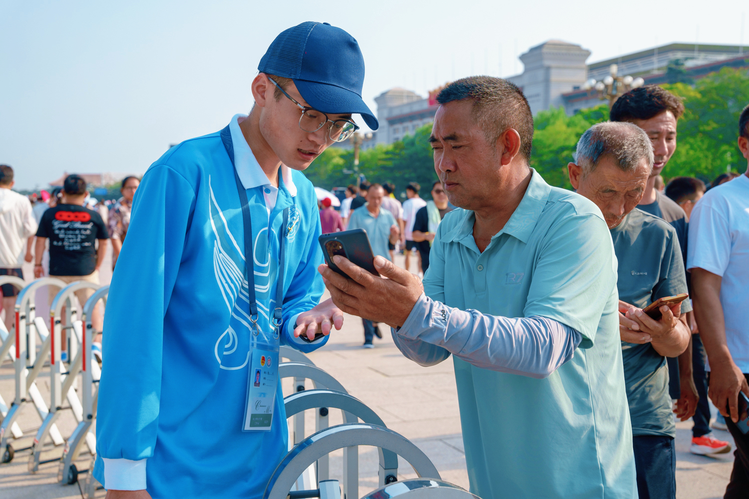 面對來自五湖四海的瞻仰群眾,他們以清晰的指引、流利的外語和溫暖的微笑服務每一位瞻仰群眾。那一聲聲親切的“謝謝”,更是化作一股股暖流,溫暖了志愿者們的心窩。志愿者張艷潔說道:“烈日下,衣服被汗浸透,我始終保持微笑,將溫馨提醒融入‘您好,請收好證件’的語言中,崗位雖小,但能把敬意傳遞出去,我就充滿驕傲。”李紅崢也談到:“這份經歷不僅鍛煉了我溝通與解決問題的能力,更讓我深刻理解到奉獻與互助的價值。微光匯聚,亦可照亮他人。它點燃了我內心的溫暖,也堅定了我繼續投身志愿服務的決心。”