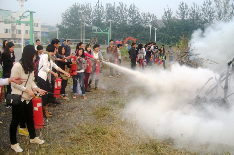 培訓(xùn)結(jié)束后,學(xué)生來到生活區(qū)操場,楊東杰副處長現(xiàn)場為大家講解了滅火器的使用方法并進(jìn)行示范。保安員點(diǎn)燃了5個(gè)模擬火堆,參演學(xué)生手持滅火器進(jìn)行滅火體驗(yàn)。所有參演學(xué)生態(tài)度認(rèn)真,能夠主動(dòng)詢問一些消防安全方面的問題,并將課堂上學(xué)到的理論知識(shí)運(yùn)用到滅火實(shí)踐中。