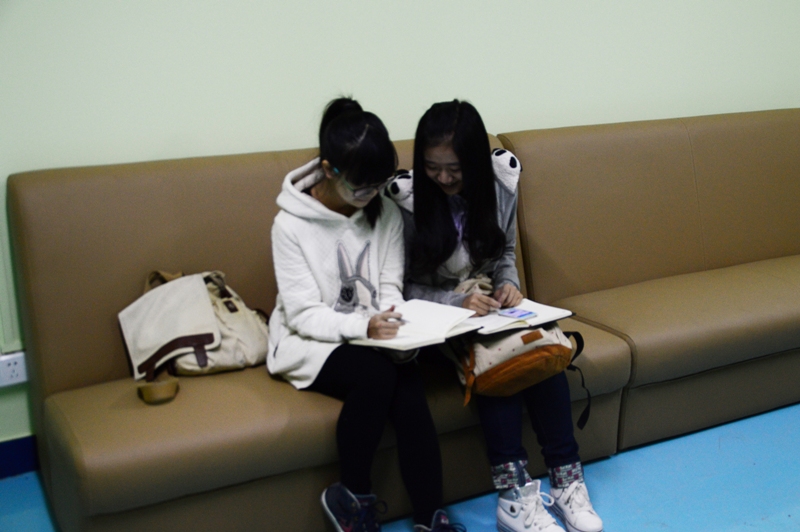 “樂•空間”以天空藍、草原綠以及鵝絨黃為主色調,清爽的色調消除了地下室給人的壓抑感覺。來過地下空間的同學紛紛表示,明亮而柔和的燈光、柔軟溫潤的色彩給人一種舒適感,聽著琴房里傳來的悠揚琴聲,感覺接受到了藝術的熏陶。同時,同學們也表示,在“樂•空間”能夠遇到很多志同道合的朋友,一起練琴、一起練舞,促進了對于藝術文化的追求,課余生活更加豐富多彩。