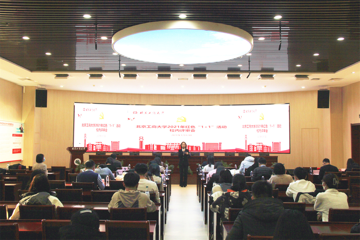 12月7日下午,2021年紅色“1+1”活動校內評審會在良鄉主校區舉行。來自全校各學院的12個黨支部參加展示和答辯,黨委組織部、學生工作部、研究生工作部、團委負責人及各學院黨建工作負責人擔任評委。