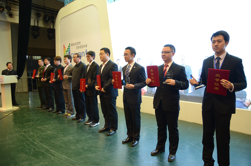 開幕式上,北京市科協(xié)夏強書記頒發(fā)了本次展示推介會的9項創(chuàng)新金獎。北京市知識產(chǎn)權局付曉輝副局長現(xiàn)場接受包括我校學生白玉廷在內的4名大學生的專利申請。