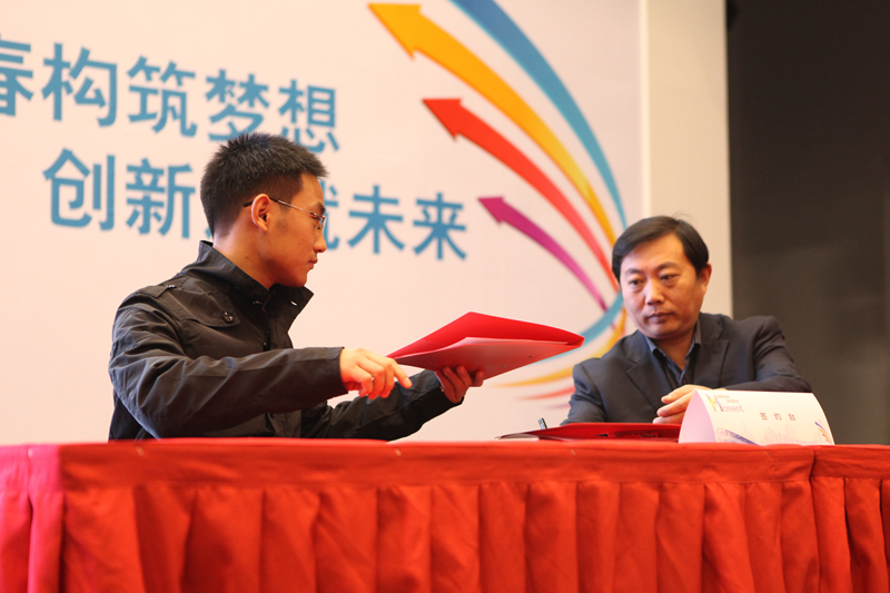 大學生的科技創(chuàng)新成果引發(fā)了企業(yè)的濃厚興趣。開幕式上,我校和北京燕京啤酒股份有限公司就“食品安全評價”課題現(xiàn)場簽訂了合作意向書。南昊(北京)科技有限公司就“一種人臉識別方法”課題與北京交通大學結對簽約。