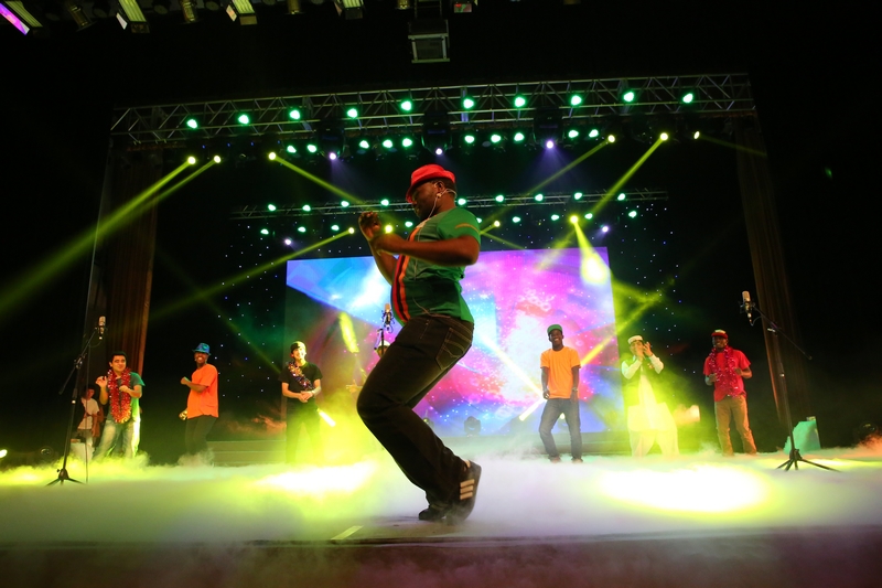 展現在觀眾面前的是精彩的節目和絢麗的場景,元旦慶祝活動背后,凝聚著晚會組織人員、演職人員、服務人員無數的創意和汗水,為了晚會的效果他們不知疲倦地忙碌著。