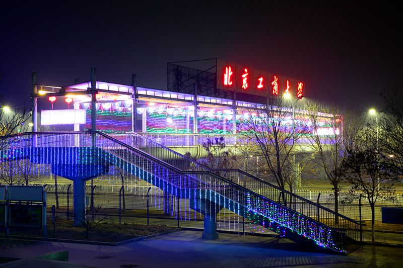 文體館前是小吃街,各種食品種類繁多,香味誘人。同學們一邊品嘗著美味的食物,一邊感受著節日的氛圍,欣賞著校園美麗的節日風景,度過了2013最后一個夜晚。