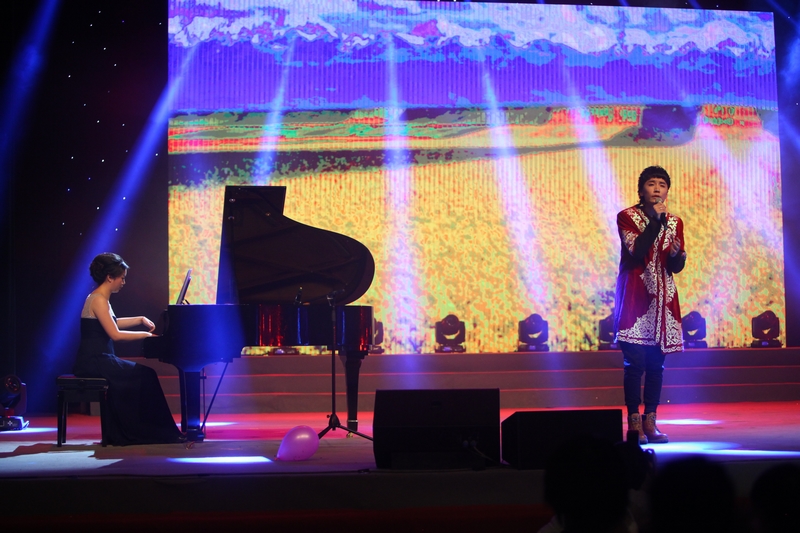 紅衣似火的合唱團同學在開場之際為在場觀眾獻上了《冬天里的一把火》等經典歌曲串燒,點燃了現場的激情;具有濃厚的少數民族氣息的《美麗的侗鄉》將觀眾們帶進了一個安詳寧靜的世界;十二位男生演繹的《老同學》唱出了濃濃的同學情誼;男女聲大合唱《大漠之夜》與《龍船調》氣勢恢宏、高亢婉轉,有很強的抒情性。合唱團學子們精彩而專業的演出贏得陣陣掌聲。來自外國語學院的哈薩克族學生阿依提江演唱的《可愛的一朵玫瑰花》,將觀眾帶到了遼闊的新疆大草原。