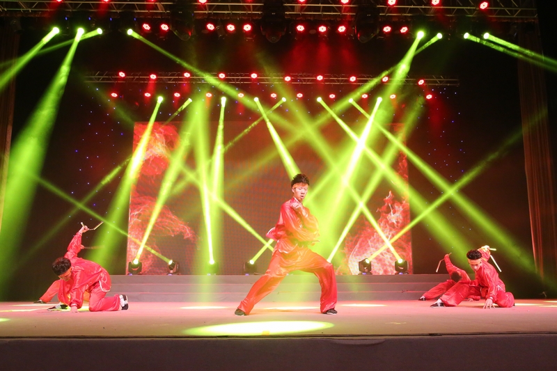 校舞蹈團的演員們帶來舞蹈《光榮與夢想》,柔美的舞蹈與大氣的音樂相互映襯,為觀眾展現了青春夢和軍旅夢。現代舞《快樂時光》,旋律動感,舞蹈團團員們時而活潑、時而深沉的舞蹈,展現了工商學子的蓬勃朝氣。身著金紅相間演出服的圖書館的老師們,以《鼓樂賀春》這一氣勢恢宏的歌舞表演向全校師生致以節日問候。精彩紛呈的《工商大舞臺》中,激情活力的健美操、柔中帶剛的太極拳、熱情奔放的拉丁、柔美優雅的藝術體操,結合速度與技巧的輪滑及帶著煙火舞動的雙截棍,將整場晚會推向了又一高潮。