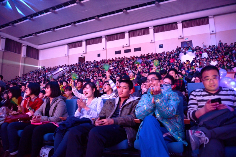 曾獲2011年星光大道周冠軍的翟長樂、楊云霞為師生們帶來了《滑稽雜技》,他們身著小丑服裝,用滑稽、輕松的雜技表演和不時變換的手中小道具帶給大家陣陣歡笑。曾獲全國雜技比賽優秀獎的演員玲瓏表演的《蹬技》,用腳頂起水缸和桌子平穩旋轉,引得觀眾紛紛喝彩。中國廣播藝術團的相聲演員孫仲秋、遲永志帶來的《歡歌笑語》令觀眾們捧腹大笑,紛紛鼓掌叫好。