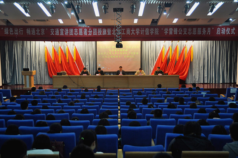 3月5日,“‘綠色出行 暢通北京’交通宣講團志愿者分團授旗暨計信學院‘學雷鋒公交志愿服務月’啟動儀式”在我校良鄉校區舉行。北京市交通委宣教中心主任楊忠偉、北京凱捷風公交客運有限責任公司副總經理常山、總經理助理王鵬,總參某部領導張興平、孫棟,計信學院院長蔡強等出席了儀式。學院黨總支副書記張凱偉主持儀式。