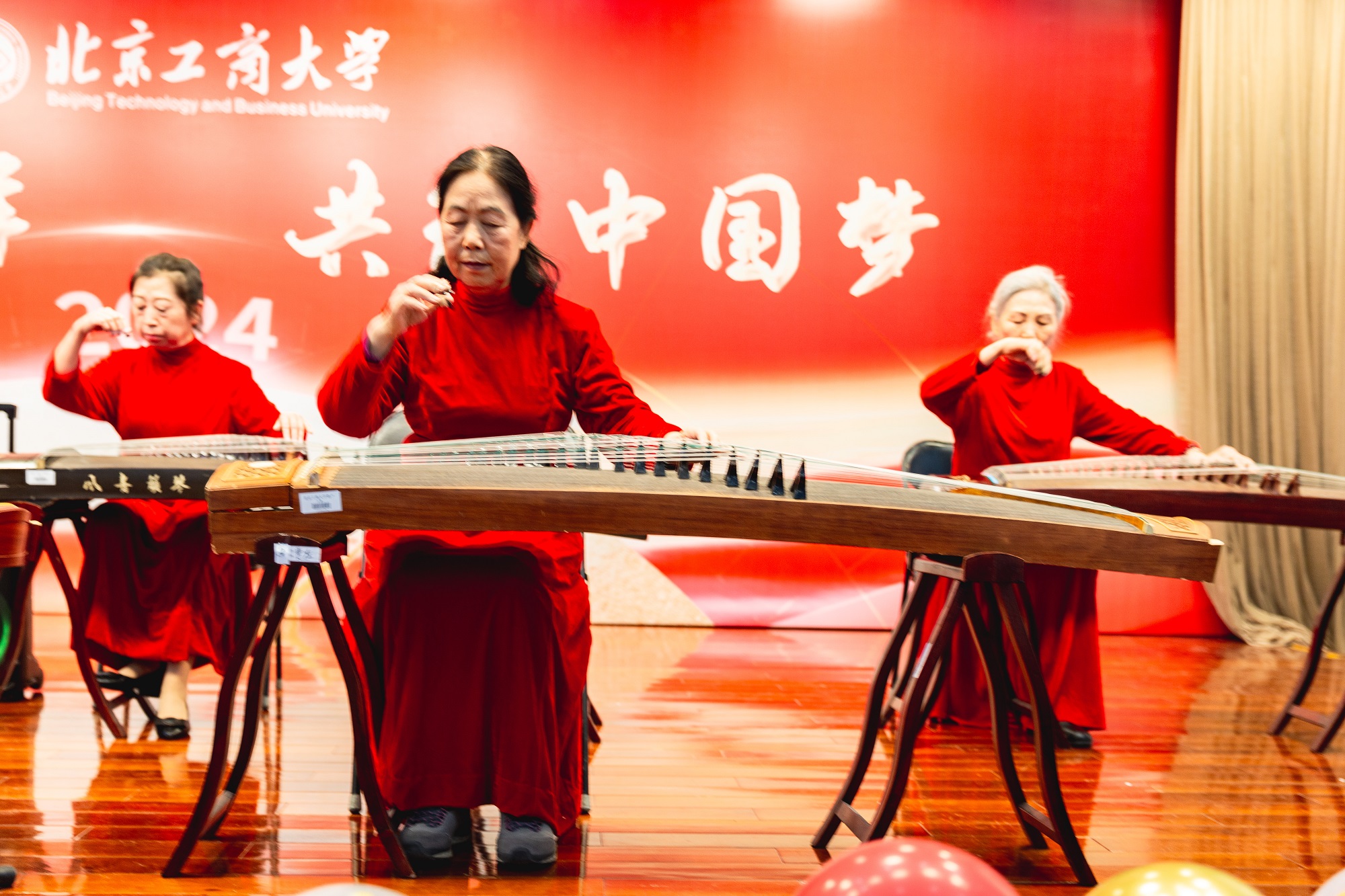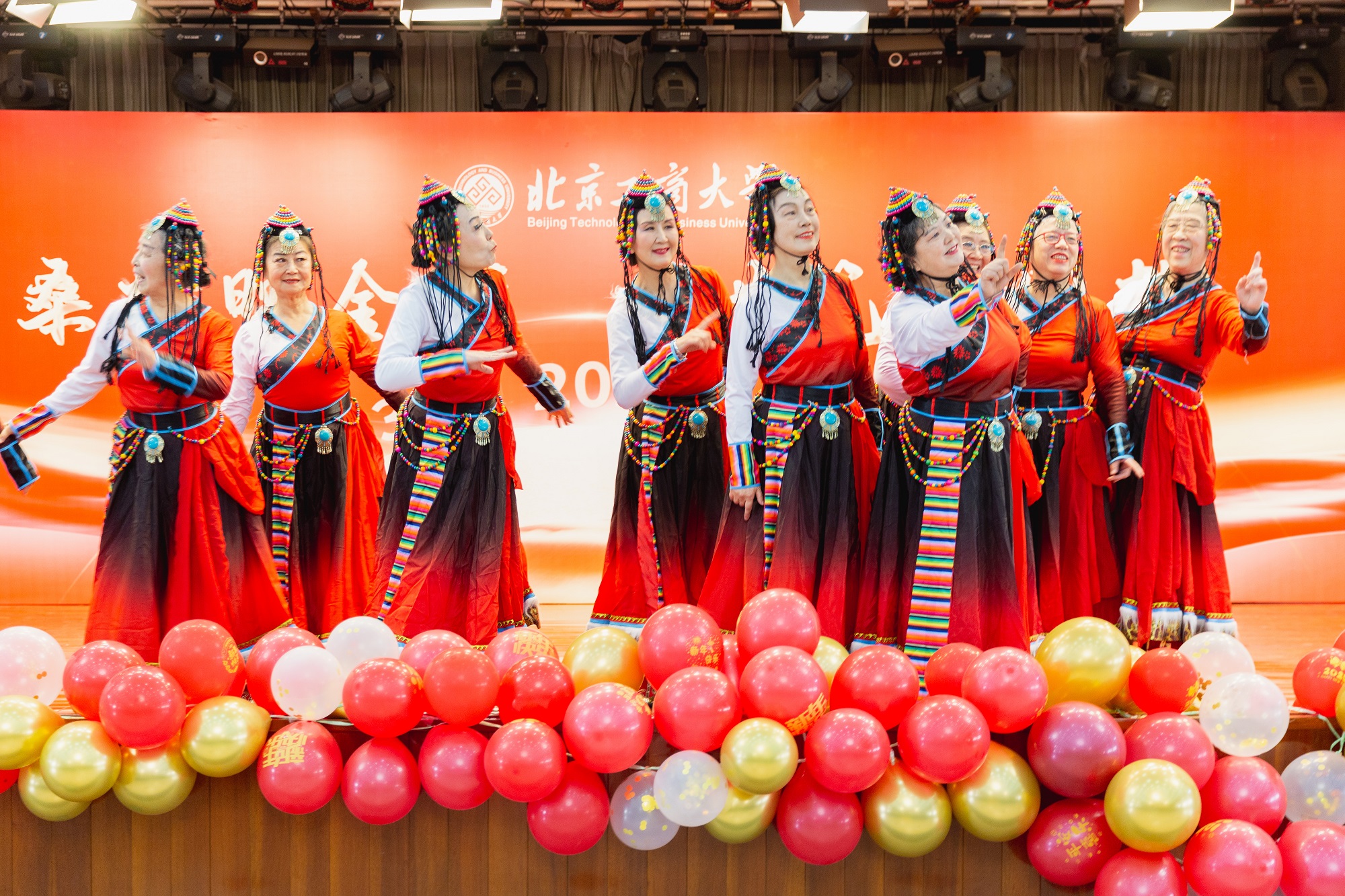 由學校退休教職工文藝團體表演的節(jié)目將團拜會帶入歡樂慶祝的熱烈氛圍。管樂合奏《我的祖國》《拉德斯基進行曲》展現了人民對祖國的熱愛和攜手并進新征程的雄心壯志;古箏合奏的《荷塘月色》、葫蘆絲合奏的《竹林深處》《婚誓》反映了人們對幸福生活的贊美和向往;大合唱《看山看水看中國》《春風十萬里》讓大家在歌聲中領略祖國大好河山,傳遞出對祖國的無盡的愛意;《難忘的那一天》《洗衣歌》兩支舞蹈展現了在祖國大家庭中,各族人民像石榴籽一樣緊緊抱在一起,不斷筑牢中華民族共同體意識;京劇名段聯唱、時裝表演《雨巷佳人》、健身項目表演《我愛你中國》展現了京劇、太極、民俗等中華優(yōu)秀傳統文化的魅力,傳遞出老同志積極向上的生活態(tài)度;書畫社老同志現場潑墨揮毫,書寫傳統春聯為大家送上祝福。整場演出帶給老同志們歡快、關懷、自信的節(jié)日氛圍,讓老同志們更加有了歸屬感和幸福感。