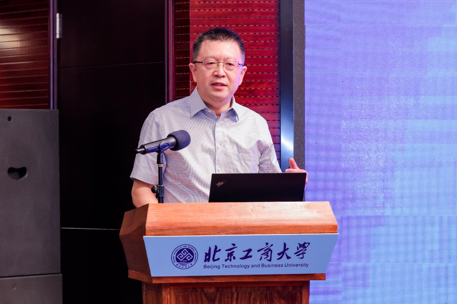 黨委副書記、校長(zhǎng)孫寶國(guó)院士致開幕辭,對(duì)與會(huì)專家致以誠(chéng)摯地感謝。他介紹了北京工商大學(xué)的基本情況和發(fā)展規(guī)劃,表示學(xué)校樹立了“雙一流”奮斗目標(biāo),并總結(jié)了“一條主線、兩個(gè)要求、三個(gè)學(xué)院和高精尖學(xué)科、四個(gè)本科專業(yè)、五個(gè)一級(jí)博士點(diǎn)、六個(gè)前百學(xué)科、七個(gè)學(xué)科門類,八個(gè)未來一級(jí)博士點(diǎn)”的成就和愿景。中國(guó)人工智能學(xué)會(huì)會(huì)長(zhǎng)戴瓊海院士、北京高教學(xué)會(huì)會(huì)長(zhǎng)線聯(lián)平、中國(guó)教育技術(shù)協(xié)會(huì)常務(wù)副會(huì)長(zhǎng)張少剛分別為論壇致辭。