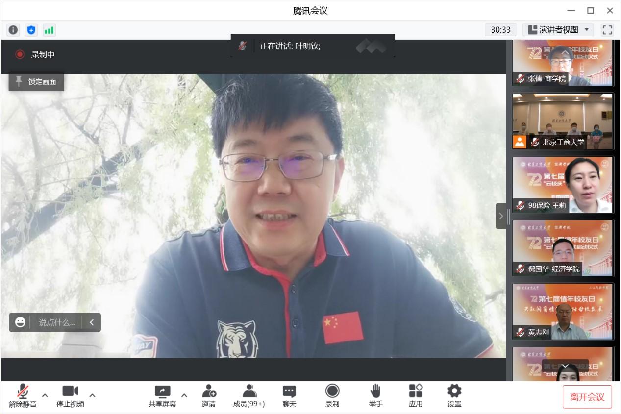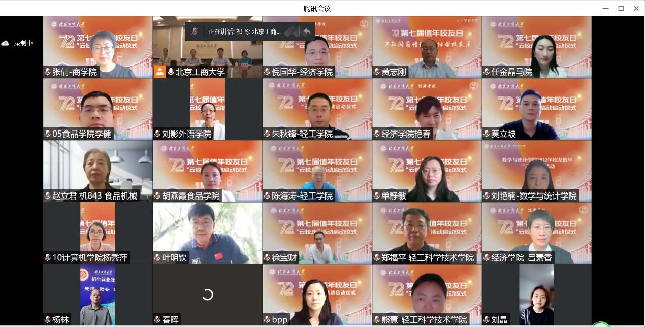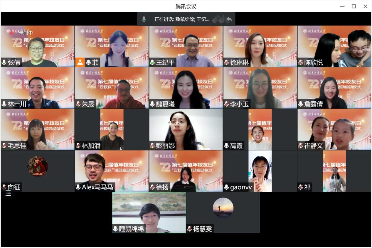 在共唱《北京工商大學(xué)校歌》的歌聲中,全體參會(huì)人員在線合影留念,“云校慶”活動(dòng)啟動(dòng)儀式圓滿落幕。
