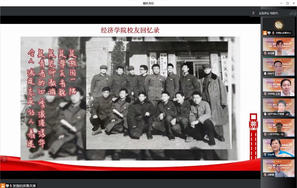 商學(xué)院以“共憶青春 云聚母校”為主題,組織各值年班級(jí)召開線上“云班會(huì)”。學(xué)院認(rèn)真籌備,成立校友值年活動(dòng)工作小組,院黨委書記任組長(zhǎng)、副書記為副組長(zhǎng),制定活動(dòng)方案,招募校內(nèi)志愿者并開展專題培訓(xùn),確保分步驟、按節(jié)點(diǎn)、專業(yè)、有序做好班級(jí)聯(lián)絡(luò)、校友對(duì)接服務(wù)。相關(guān)值年班級(jí)分別召開各具特色的“云班會(huì)”,邀請(qǐng)120余名全球各地校友,與學(xué)院領(lǐng)導(dǎo)及時(shí)任輔導(dǎo)員、班主任、任課老師等齊聚云端,共襄盛會(huì)。校友們紛紛感慨畢業(yè)后時(shí)光流逝,感動(dòng)于母校發(fā)展迅速,祝福母校事業(yè)蒸蒸日上,發(fā)展越來越好!