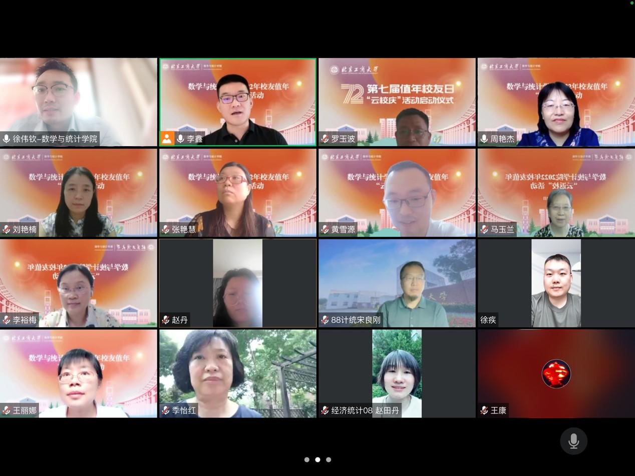 玉淵潭清,永定河長(zhǎng),這里有我親愛的北工商。6月12日,學(xué)校以“云端遙寄祝福 共享發(fā)展喜悅 共繪發(fā)展藍(lán)圖”為主題,隆重舉辦北京工商大學(xué)第七屆值年校友日“云校慶”活動(dòng)。黨委副書記、校長(zhǎng)孫寶國(guó),黨委常委、副校長(zhǎng)左敏出席啟動(dòng)儀式,黨委副書記王偉,黨委常委、副校長(zhǎng)劉敏華、左敏等出席聯(lián)系學(xué)院活動(dòng)。校友會(huì)負(fù)責(zé)人、相關(guān)學(xué)院領(lǐng)導(dǎo)、廣大校友、師生代表等1600余人線上相聚,共敘師友情誼,共商發(fā)展大計(jì),共慶學(xué)校72周年華誕。