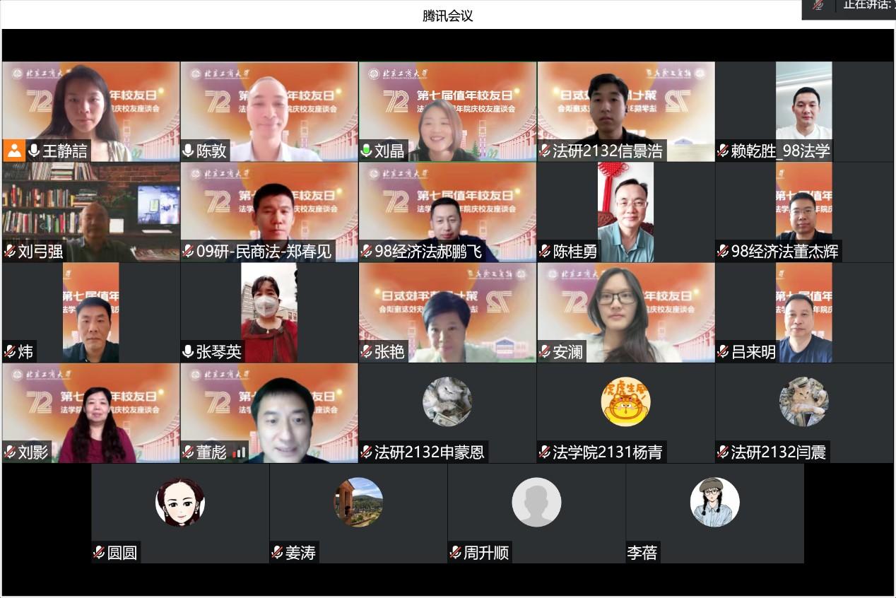 法學(xué)院以“分享成長(zhǎng)故事,為母校發(fā)展建言獻(xiàn)策”為主題,線上舉辦35周年院慶暨校友代表座談會(huì),邀請(qǐng)來自政府機(jī)關(guān)、企事業(yè)單位、律所等多個(gè)行業(yè)的校友代表齊聚一堂,共敘情誼,共謀發(fā)展。學(xué)院領(lǐng)導(dǎo)班子成員、教師代表和部分在校生等參加會(huì)議。座談會(huì)上,校友們觀看了學(xué)院宣傳片,對(duì)法學(xué)院近些年來的快速發(fā)展和辦學(xué)條件的改善倍感振奮。校友們回顧了自己的校園生活,分享了各自的成長(zhǎng)經(jīng)歷,對(duì)學(xué)院未來發(fā)展建言獻(xiàn)策,對(duì)學(xué)弟學(xué)妹們提出了寶貴建議。同時(shí),各值年校友班級(jí)群里積極互動(dòng),為法學(xué)專業(yè)入選國(guó)家級(jí)一流本科專業(yè)建設(shè)紛紛點(diǎn)贊。