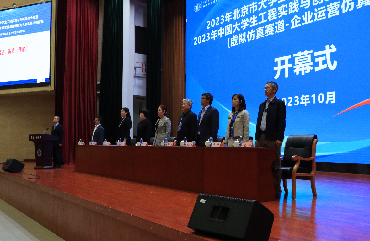 10月28日,2023年北京市大學(xué)生工程實(shí)踐與創(chuàng)新能力大賽暨2023年中國(guó)大學(xué)生工程實(shí)踐與創(chuàng)新能力大賽北京市選拔賽(虛擬仿真賽道-企業(yè)運(yùn)營(yíng)仿真賽項(xiàng))(以下簡(jiǎn)稱2023年“中國(guó)工創(chuàng)大賽北京市選拔賽企業(yè)運(yùn)營(yíng)仿真賽項(xiàng)”)在北京工商大學(xué)良鄉(xiāng)校區(qū)舉行。本次大賽由北京市教育委員會(huì)主辦、北京工商大學(xué)經(jīng)濟(jì)學(xué)院、北京工商大學(xué)教務(wù)處、經(jīng)濟(jì)管理國(guó)家級(jí)實(shí)驗(yàn)教學(xué)示范中心(北京工商大學(xué))、經(jīng)濟(jì)管理國(guó)家級(jí)虛擬仿真實(shí)驗(yàn)教學(xué)示范中心(北京工商大學(xué))承辦。此次大賽有15所高校參與,共計(jì)136支隊(duì)伍、約500余人參加,最終有39支參賽隊(duì)伍晉級(jí)本次選拔賽。出席此次開幕式的嘉賓有北京工商大學(xué)黨委常委、副校長(zhǎng)徐丹丹,北京市教委高教處二級(jí)調(diào)研員金紅蓮,國(guó)賽巡視員(武漢理工大學(xué)工程訓(xùn)練中心主任、機(jī)電工程學(xué)院副院長(zhǎng))王志海教授,大賽裁判長(zhǎng)(中國(guó)社會(huì)科學(xué)院大學(xué)應(yīng)用經(jīng)濟(jì)學(xué)院副院長(zhǎng)、中國(guó)社會(huì)科學(xué)院國(guó)家未來城市實(shí)驗(yàn)室副主任)叢曉男研究員,仲裁小組組長(zhǎng)(中國(guó)科學(xué)院科技戰(zhàn)略咨詢研究院)吳靜研究員,經(jīng)濟(jì)學(xué)院執(zhí)行院長(zhǎng)詹新宇教授,教務(wù)處副處長(zhǎng)楊華,經(jīng)濟(jì)學(xué)院副院長(zhǎng)張偉教授。大賽開幕式由經(jīng)濟(jì)學(xué)院書記呂良主持。