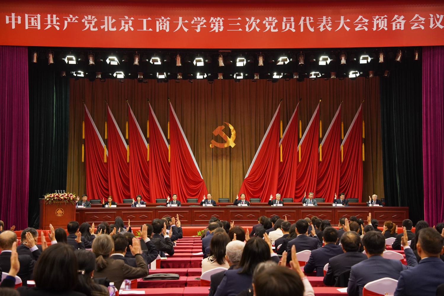3月28日,中國(guó)共產(chǎn)黨北京工商大學(xué)第三次黨員代表大會(huì)預(yù)備會(huì)議在良鄉(xiāng)主校區(qū)文體館召開。校領(lǐng)導(dǎo)黃先開、孫寶國(guó)、王偉、李中奇、歐陽媛、鄭文紅、徐丹丹、劉敏華、左敏出席會(huì)議,第三次黨員代表大會(huì)黨代表參會(huì)。會(huì)議由黨委書記黃先開主持。
