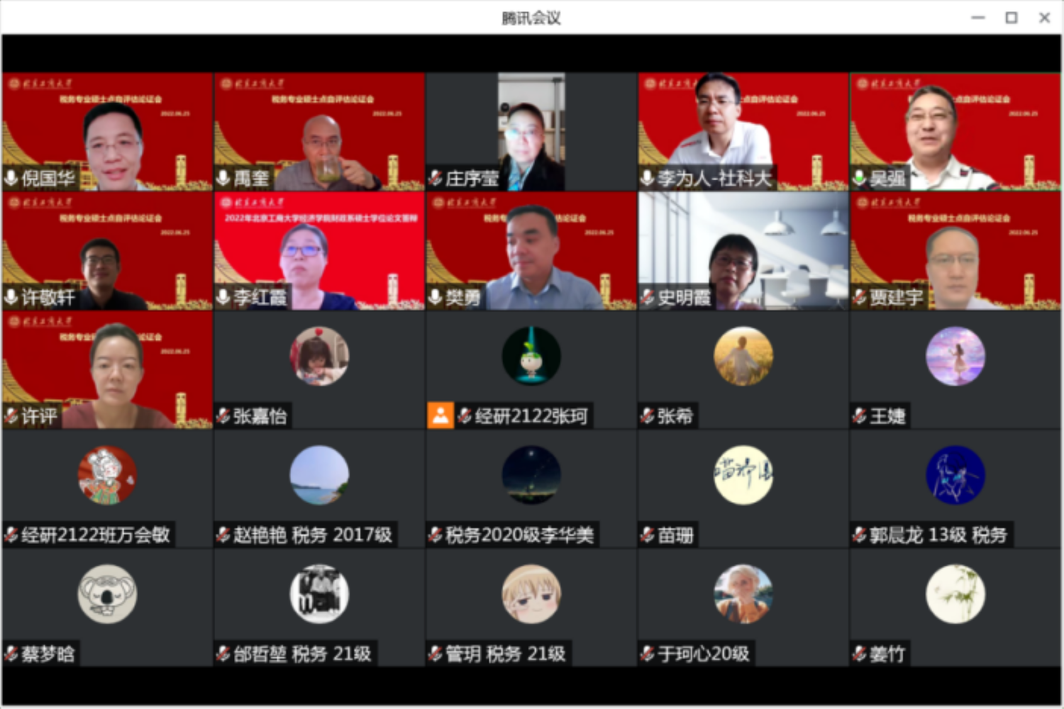 6月21日下午,資產評估專業碩士學位授權點召開自評估專家論證會。會議邀請的專家組成員包括全國資產評估專業學位研究生教指委秘書長、中央財經大學財政稅務學院副院長李小榮教授,全國資產評估專業學位研究生教指委委員、中國人民大學商學院 MV 項目主任俞明軒教授,全國資產評估專業學位研究生教指委委員、北京中企華資產評估有限責任公司總裁兼CEO兼首席評估師劉登清博士,中聯資產評估集團有限公司總裁胡智先生,中和資產評估有限公司董事朱軍博士。