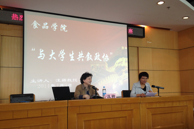 4月9日,食品學院舉辦“與大學生共敘政協”主題報告交流會。全國政協委員、食品學院教授汪蘋受邀,以“全民參與、參政議政”為主題,與近150名研究生和本科生黨員深入交流。此次交流會堅持沿用“研本互動”的黨員教育模式,倡導團體式、互動式和研討式的學習方法,幫助學生黨員在團隊中自覺提高學習能力和政治素養,創新學習型黨組織建設,深化學生黨員先鋒工程。交流會由學院黨總支副書記胡燕霞主持。