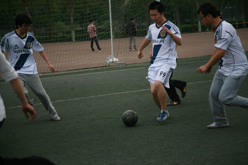 五人制足球賽的半決賽中,雙方球員進(jìn)攻猛烈,毫不示弱。雙方隊員精湛的腳法、完美的盤帶、犀利的射門以及默契的配合、縝密的隊形部署博得場邊拉拉隊的陣陣喝彩。