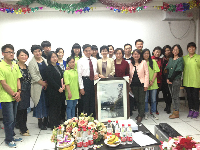 新聞系以沈毅教授各時期創(chuàng)作的“詩”為線,在美妙音樂的伴奏下,進行了不同形式組合的詩朗誦,還以師生合唱形式,創(chuàng)作填詞,吟唱對沈毅教授的不舍之情。林剛專門創(chuàng)作“恭賀沈毅教授六十壽辰”七律詩,表達了與沈毅教授多年的同事情誼。作為最后一屆有機會聆聽沈教授主講課程的學生,12級新聞學和廣播電視學專業(yè)學生代表也獻上了原創(chuàng)的詩朗誦和禮物,真誠表達了對風趣博學的“沈爺爺”的敬意和熱愛。圍繞著沈教授創(chuàng)作的詩詞,茶話會上還開展了詩名競猜游戲,院領導和全體參會教師興致盎然地參加了競猜活動,會場上充滿了歡樂的笑聲。